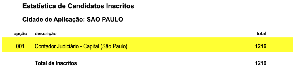 A banca responsável pela seleção, a Vunesp, divulgou o número de candidatos inscritos no concurso TJ SP Contador. Foram registradas 1.216 candidaturas para disputar por uma das vagas. Confira aqui.