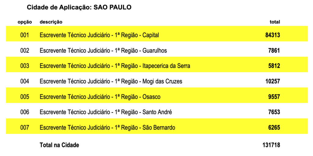 A Vunesp, banca organizadora, divulgou o número de inscrições e a distribuição de candidatos pelas circunscrições ofertadas.