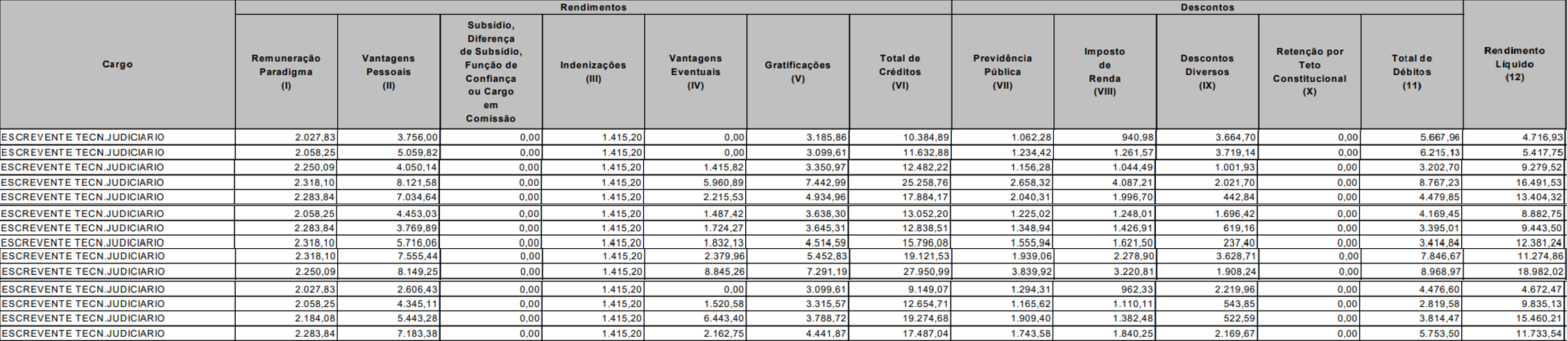 Além disso, em março de 2022 o Tribunal concedeu reajuste de 10% nos vencimentos básicos e também nos auxílios concedidos aos servidores, com isso, os valores passaram a ser os seguintes:
