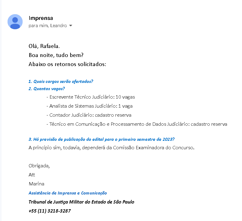 Em contato com a assessoria de comunicação do Tribunal de Justiça Militar do Estado de São Paulo, a equipe de jornalismo do Estratégia Concursos obteve detalhes acerca do próximo concurso TJM SP.