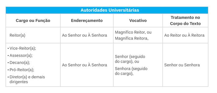 “As formas de tratamento adequadas aos cargos de reitor e vice-reitor de uma universidade são Vossa Magnificência e Vossa Senhoria, respectivamente.”