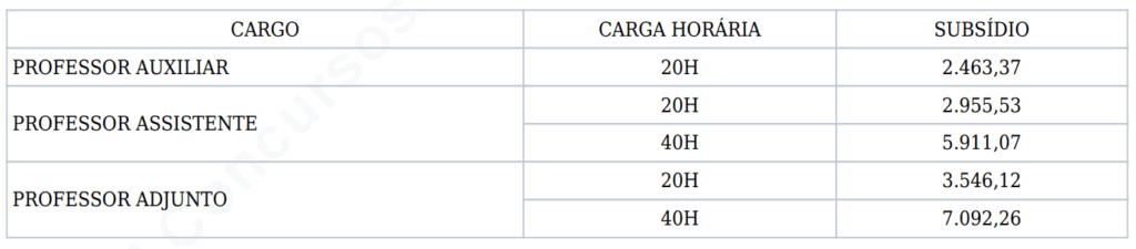 - Salário inicial: R$2.955,53 a R$5.911,07 (último edital)