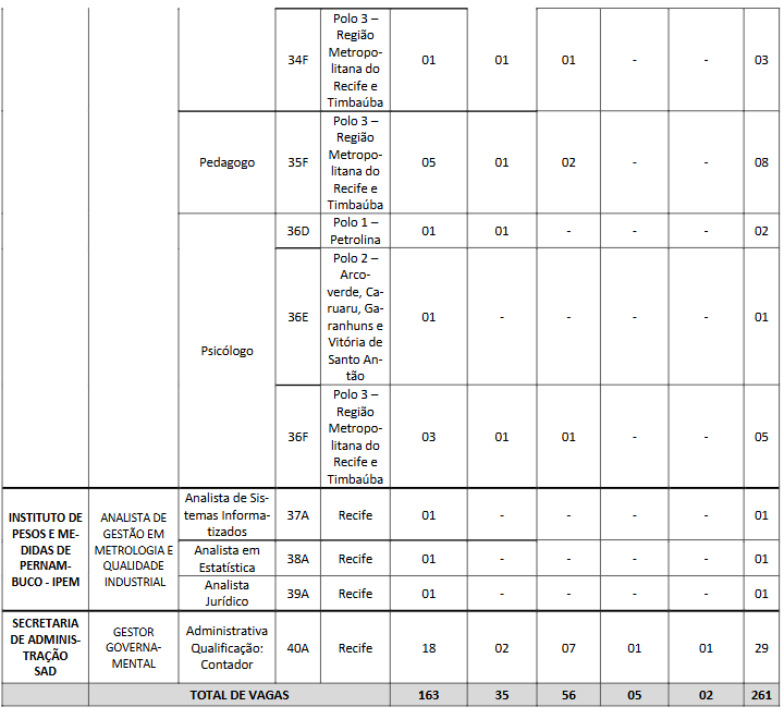261 vagas para Agência de Regulação de Pernambuco (ARPE), Agência Estadual de Tecnologia da Informação (ATI), Agência Estadual de Meio Ambiente (CPRH), Fundação de Aposentadorias e Pensões dos Servidores do Estado (FUNAPE), Fundação de Atendimento Socioeducativo (FUNASE), Instituto de Pesos e Medidas (IPEM) e Secretaria de Administração (SAD).