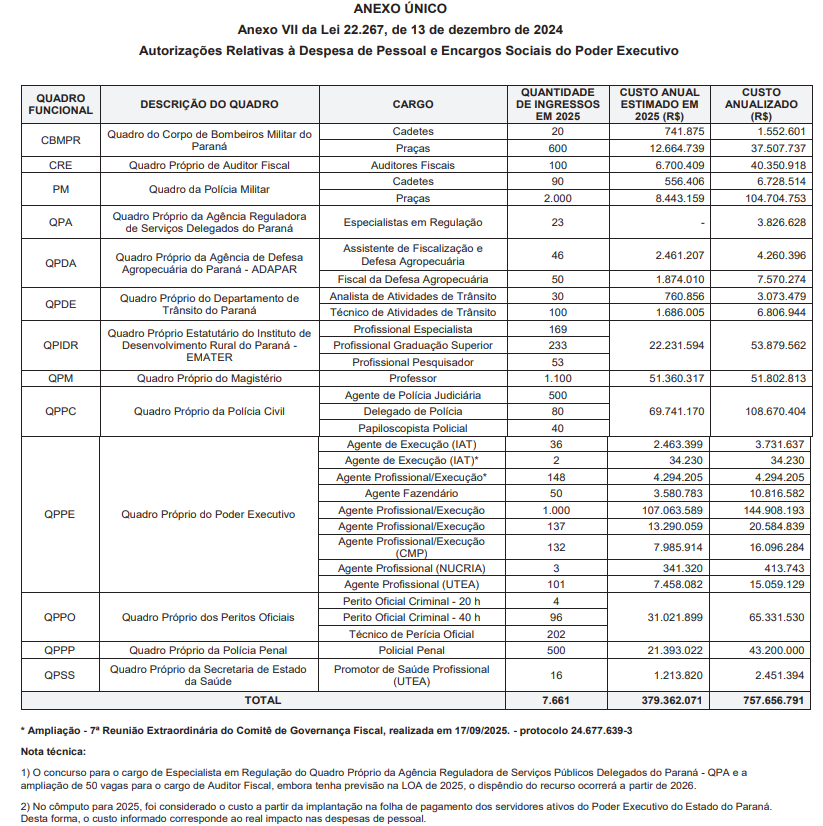 Apesar do quantitativo divulgado, o governo estadual, através do anexo, estabelece as autorizações relativas à despesa de pessoal, mas não necessariamente convocará os 7,6 mil previstos.