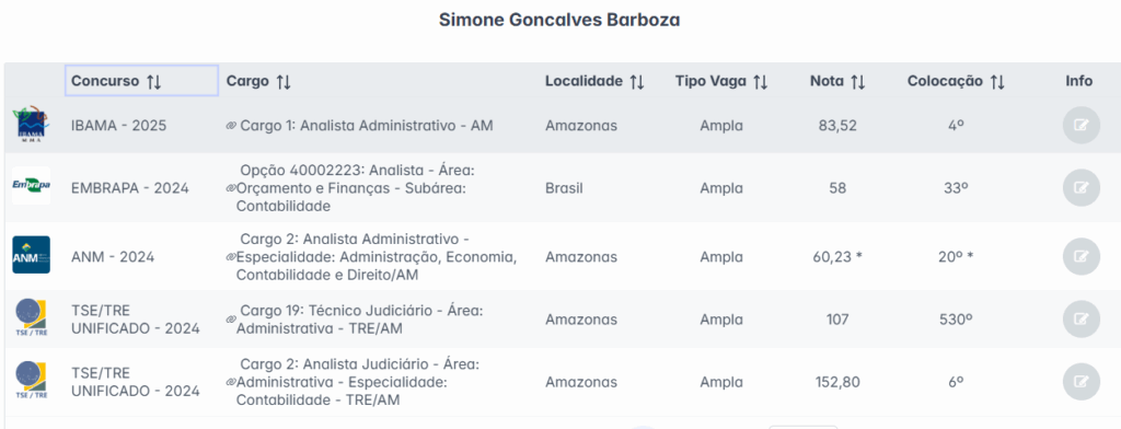 - IBAMA abr/25 – Analista administrativo – 4° lugar (4 vagas imediatas);