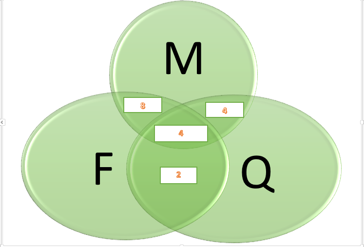 • F∩Q = 6(dado na questão) – 4(quem faz as 3 matérias) = 2