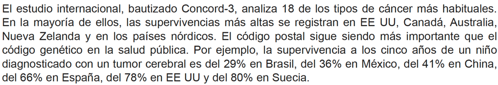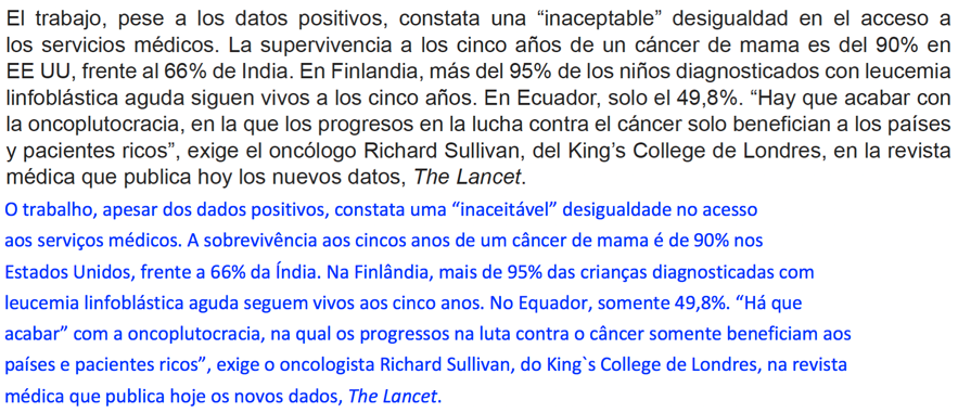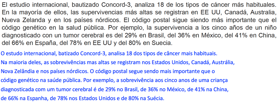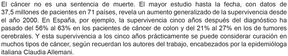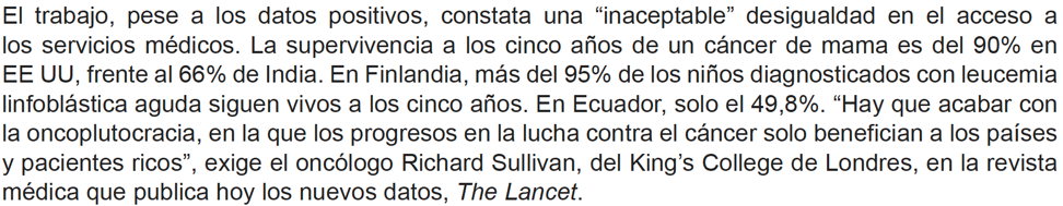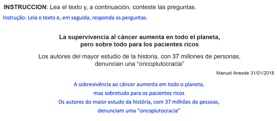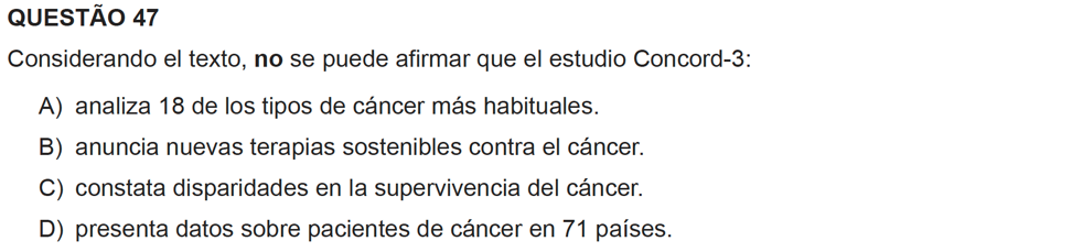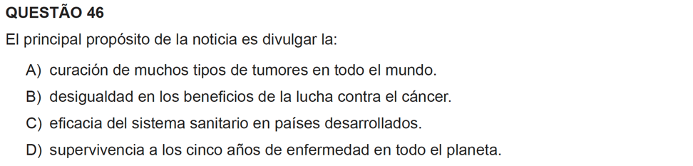 A prova possui um texto, constituído de nove parágrafos, versando sobre o câncer, sobre a sobrevivência a essa doença e sobre as desigualdades de tratamentos para aqueles que possuem mais dinheiro.