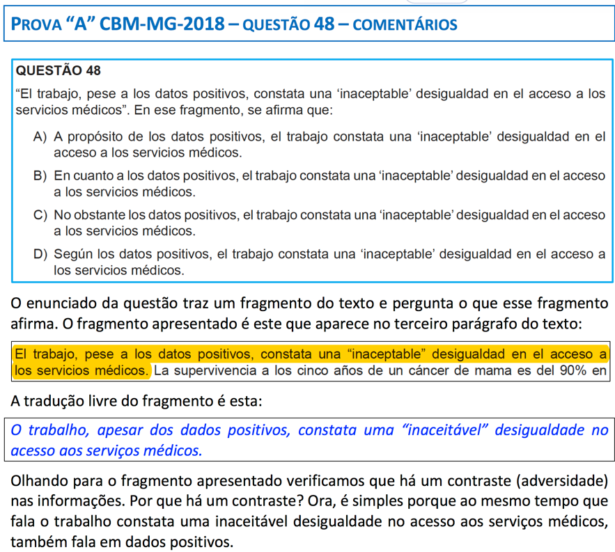 Vocês notarão que a prova foi bem simples e esteve dentro daquilo que aprendemos em nosso curso de Espanhol aqui no Estratégia.
