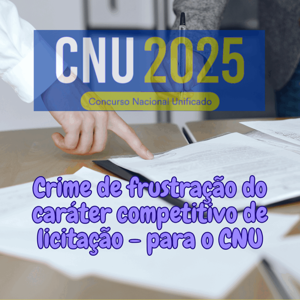 Portanto, pessoal, esse foi nosso breve resumo sobre o crime de frustração do caráter competitivo de licitação, visando ao CNU (Concurso Nacional Unificado).