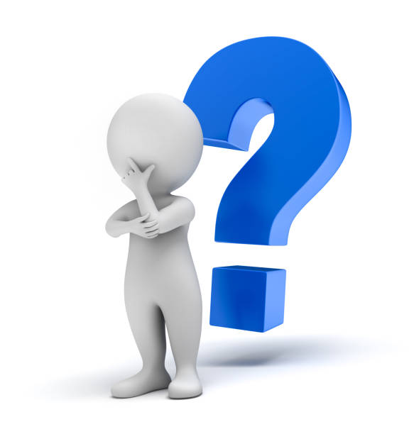 Little white comic man with blue question mark