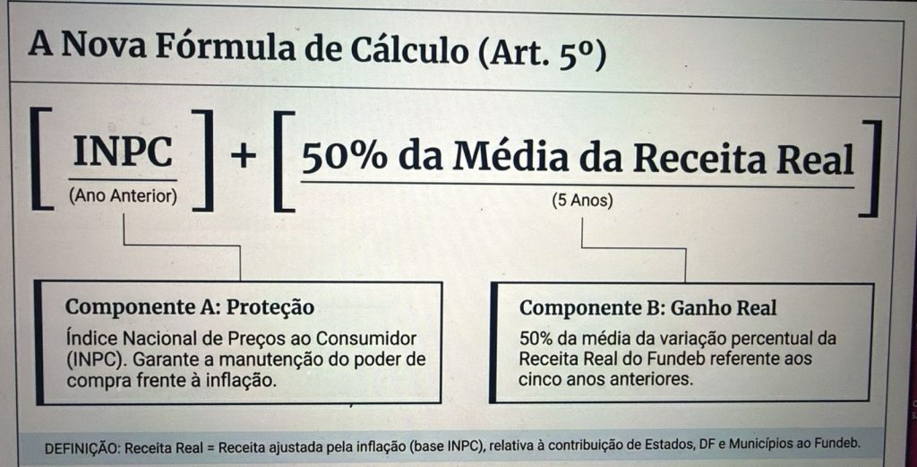 A receita será relativa à contribuição de estados, Distrito Federal e municípios ao Fundo de Manutenção e Desenvolvimento da Educação Básica e de Valorização dos Profissionais da Educação (Fundeb), realizada nos cinco anos anteriores ao ano da atualização.