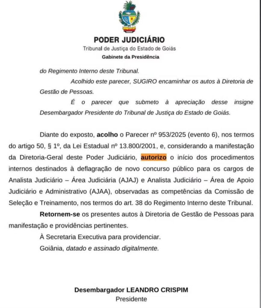 Para saber mais do novo concurso TJ GO autorizado, acesse: Concurso TJ GO
