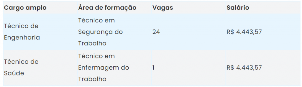 O edital de Licitação prevê a oferta de sete vagas imediatas, distribuídas aos cargos de Fiscal de Tributos e Auditor Fiscal, que exigem formação de nível médio e superior, respectivamente. Além da ampla concorrência, haverá também oportunidades para pessoas com deficiência.