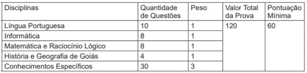 De caráter eliminatório e classificatório, a prova objetiva será composta por questões de múltipla escolha. Serão abrangidos Conhecimentos Gerais e Específicos, sendo avaliados na escala de 0 a 100.