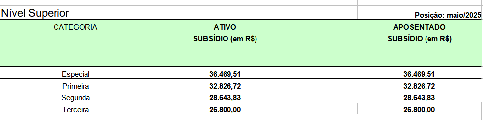 Tabela remuneratória da PMMG: