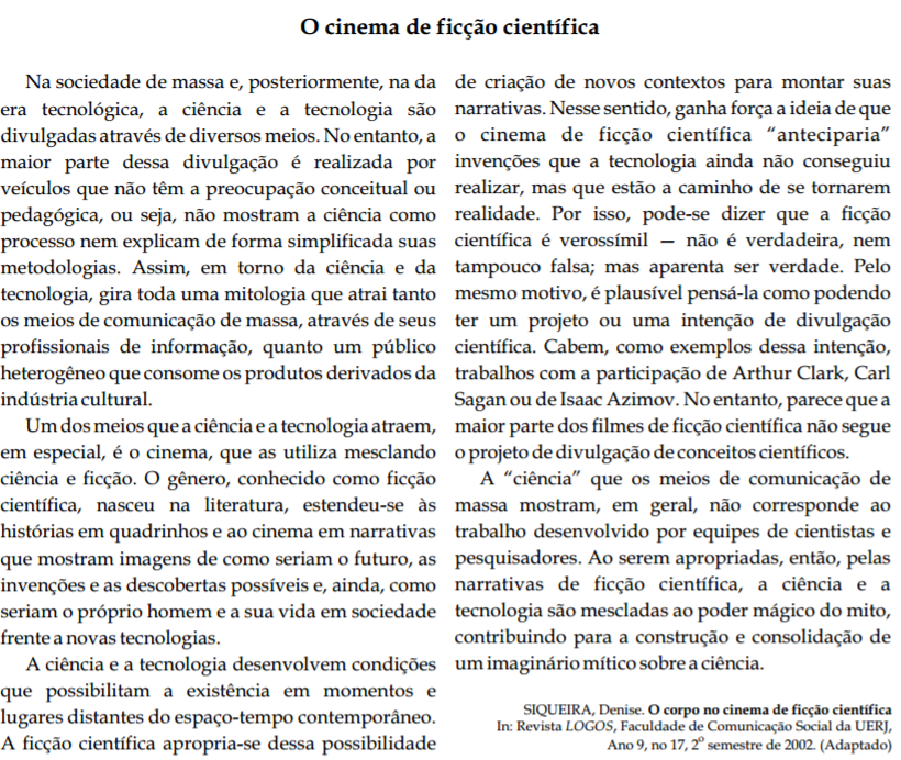 De acordo com esse texto, o gênero, conhecido como ficção científica,
