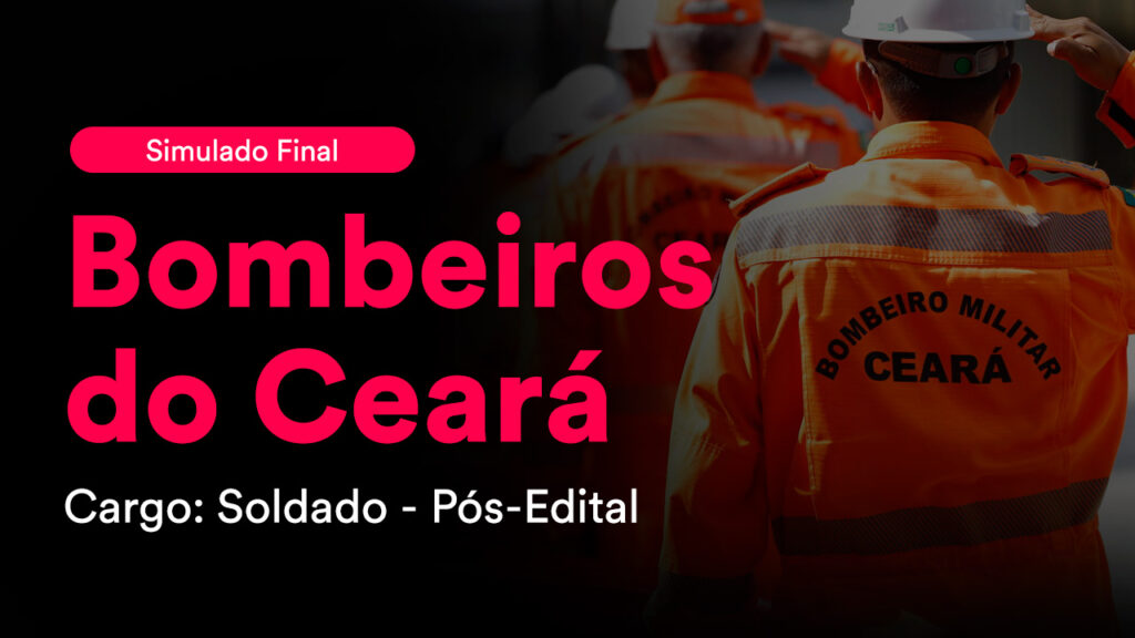 Por isso, neste sábado, 26 de julho, a partir das 8h, realizaremos o Simulado Final Bombeiros CE – Soldado. Tenha em mente que a realização de simulados contribuiu significativamente para o sucesso de muitos alunos e contribuirá também para o seu.
