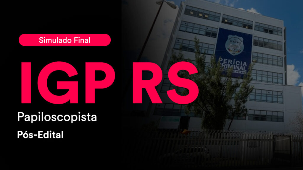 Por isso, neste sábado, 31 de maio, a partir das 8h, realizaremos o Simulado Final IGP RS – Papiloscopista. Tenha em mente que a realização de simulados contribuiu significativamente para o sucesso de muitos alunos e contribuirá também para o seu.