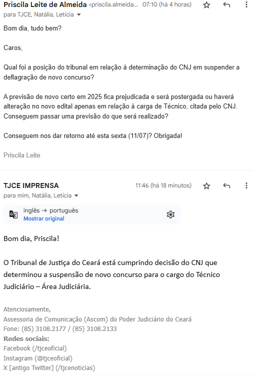 Em resposta encaminhada pela assessoria de imprensa do tribunal cearense nesta quarta-feira, 09 de julho, o “Tribunal de Justiça do Ceará está cumprindo decisão do CNJ que determinou a suspensão de novo concurso para o cargo do Técnico Judiciário – Área Judiciária”.